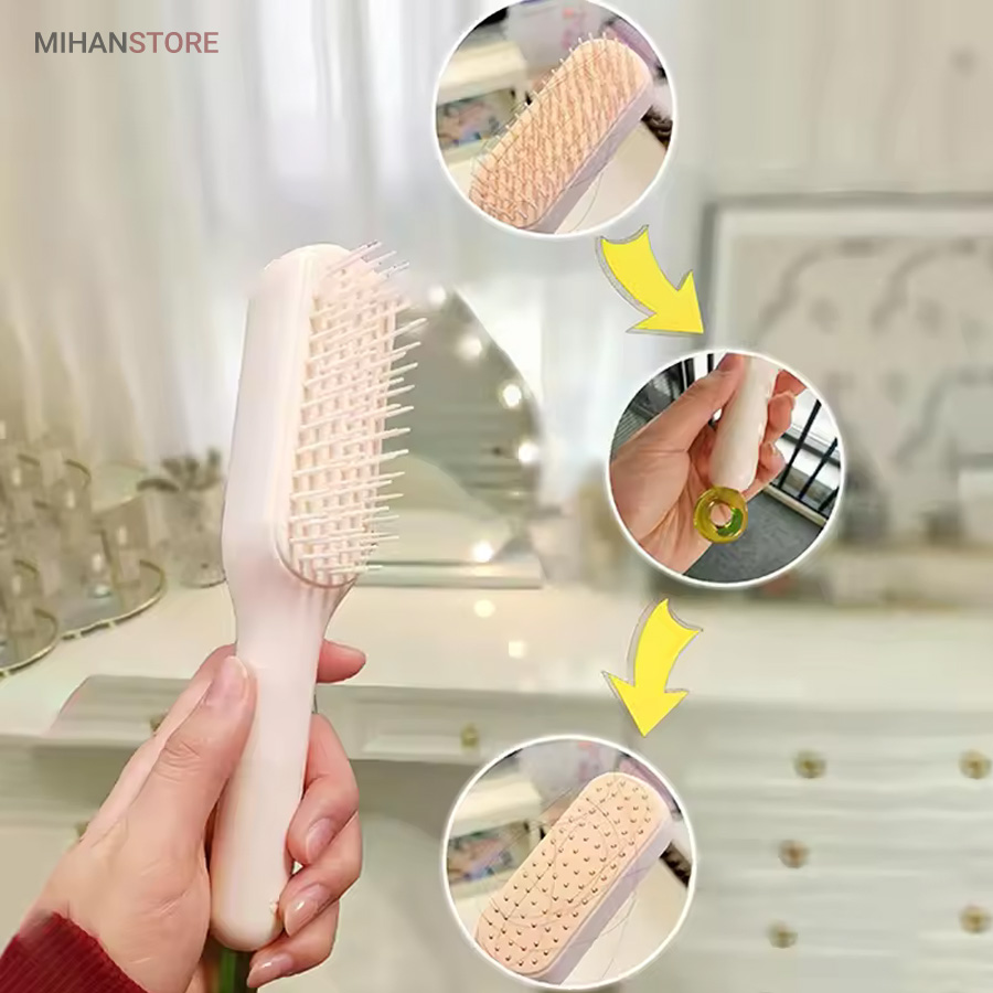 این برس یه برس معمولی نیست دیدی وقتی موهاتو برس میکشی موها تو دندونه های برس گیر میکنه تازه بعد مدت ها کلی هم کف شونه کثیف میشه و باعث ریزش مو ، خارش کف سر و شوره و موخوره میشه؟ یه اهرم پایینش داره که فشار بدید دندانه های این برس میره داخل و هم موها خیلی راحت از برس جدا میشه هم میتونید کف برس رو به راحتی تمیز کنید.دندانه‌های نرم و انعطاف‌پذیر که به آرامی موها را شانه کرده و از کشیده شدن و آسیب دیدن آنها جلوگیری می‌کند. طراحی ارگونومیک و سبک که کار شانه کردن را آسان‌تر می‌سازد. قابلیت تمیز کردن آسان؛ کافیست با یک فشار ساده دندانه‌هارا از موها و گرد و غبارپاک کنید. تازه دندانه های منعطف و آنتی باکتریالی داره که هم خیلی راحت موها رو شونه میکنه و گره موها رو باز میکنه هم باعث موخوره نمیشه.