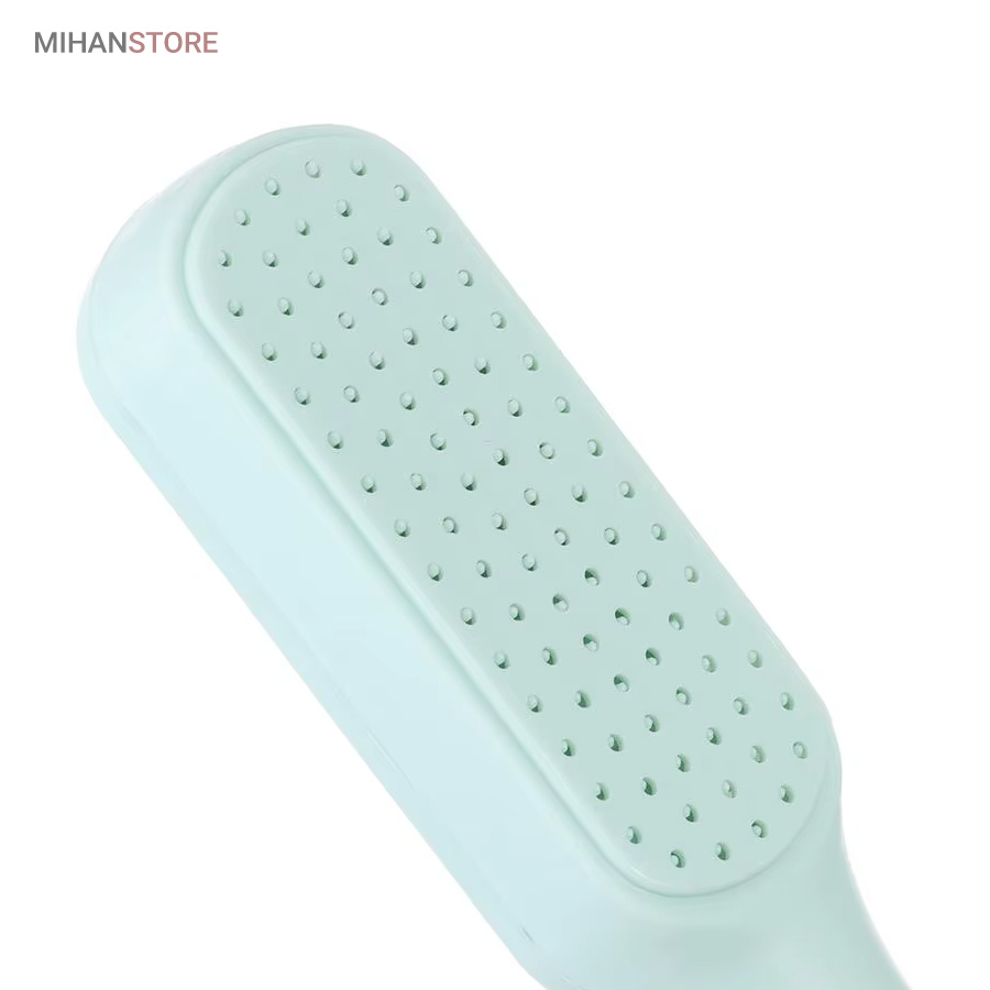 این برس یه برس معمولی نیست دیدی وقتی موهاتو برس میکشی موها تو دندونه های برس گیر میکنه تازه بعد مدت ها کلی هم کف شونه کثیف میشه و باعث ریزش مو ، خارش کف سر و شوره و موخوره میشه؟ یه اهرم پایینش داره که فشار بدید دندانه های این برس میره داخل و هم موها خیلی راحت از برس جدا میشه هم میتونید کف برس رو به راحتی تمیز کنید.دندانه‌های نرم و انعطاف‌پذیر که به آرامی موها را شانه کرده و از کشیده شدن و آسیب دیدن آنها جلوگیری می‌کند. طراحی ارگونومیک و سبک که کار شانه کردن را آسان‌تر می‌سازد. قابلیت تمیز کردن آسان؛ کافیست با یک فشار ساده دندانه‌هارا از موها و گرد و غبارپاک کنید. تازه دندانه های منعطف و آنتی باکتریالی داره که هم خیلی راحت موها رو شونه میکنه و گره موها رو باز میکنه هم باعث موخوره نمیشه.