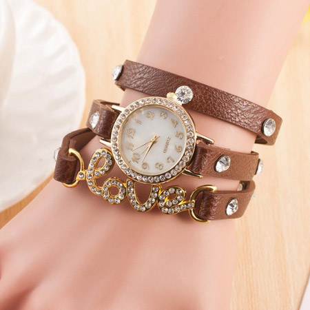 ویژگی های ساعت زنانه نگین دار طرح Love: